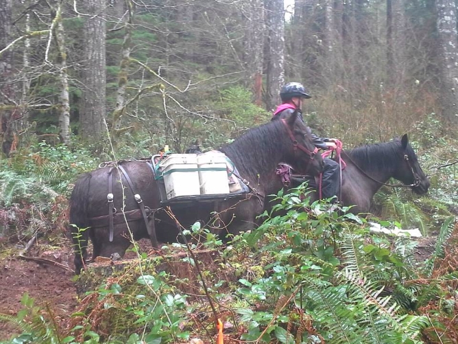 Braeberry Barnabas, Townend Bunny, and Braeberry Ruby joined MTTR on a service project working on trails in the Capitol Forest near Olympia, Washington.