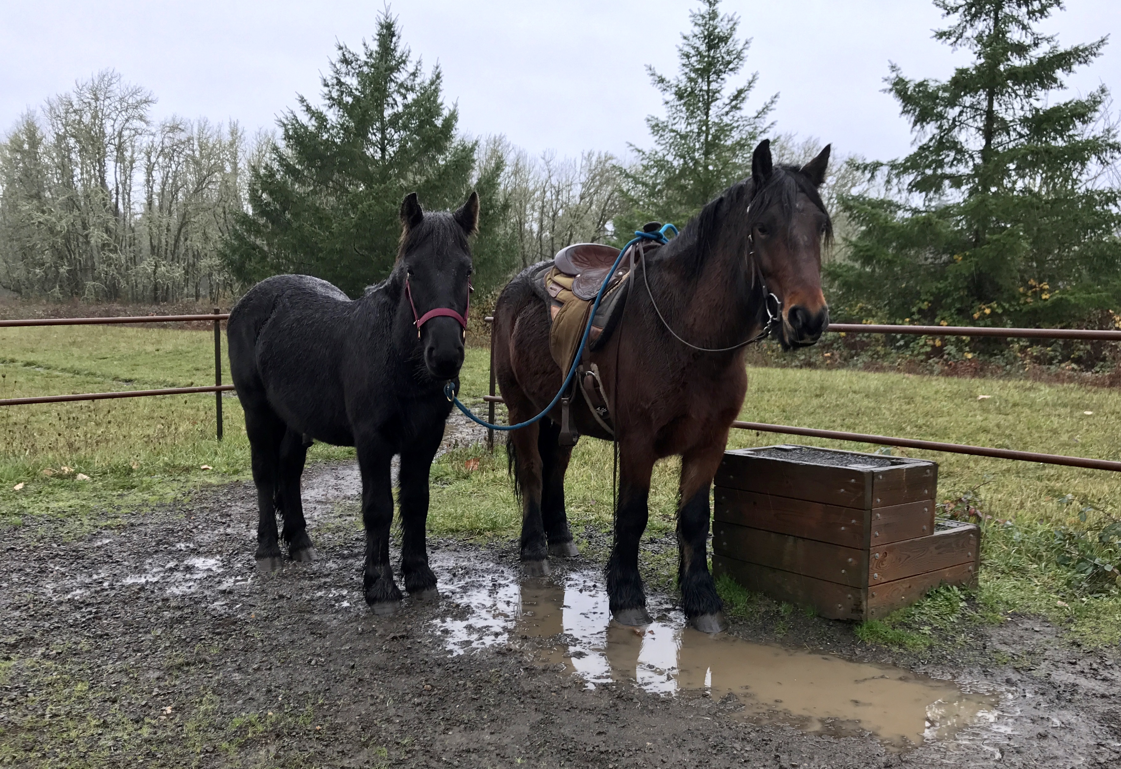 Trooper (left) is a 2016 model gelding owned by Pat Walters of Pegasus Healing Center in Eugene, OR. We are honored to help prepare Trooper for his life at Pegasus by putting a good basic foundation on him that is suitable for his age. Pat is a PATH Intl. certified instructor and Pegasus specializes in Equine Assisted Learning. Pat specifically chose the Fell pony breed for her program because of their calm, thoughtful temperament and their willingness to partner and be engaged. Pat has been following our foundation training program for quite some time and felt it would be spot on beneficial for Trooper to spend some time with us. Braeberry Victor (right) has been helping us in this process by providing emotional support in all the new things we have been showing & teaching Trooper.